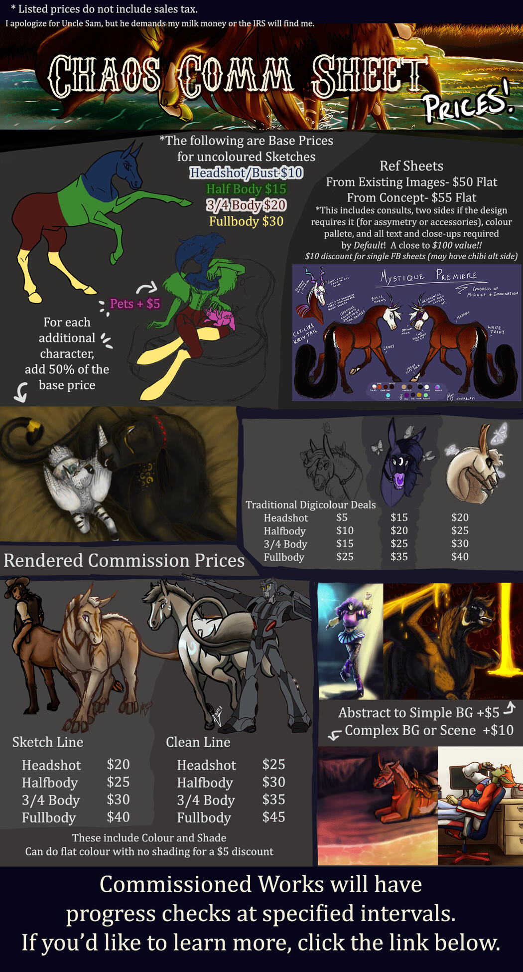 **By purchasing or acquiring any art or design I have made the client or clients -referred to in these Terms of Service as "the client", consumer, customer, you, your, and/or yourself- are agreeing to these terms of service of the seller- referred to in these Terms of Service as "the seller", Mystic Mahogany Studios, choasblast03, cowgirlknight, I, me, mine, my, and/or myself. This agreement is considered binding regardless of how it was acquired.**The phrase "art or design I have made" when stated within these Terms of Service includes but is not limited to the following products when made or are in the process being made by myself: Adopts, Customs, Character designs, redesigns, gifts, line arts, reference sheets, artwork, Works-in-Progress, sketches, and concept pieces.**The phrase "art I have made" when stated within these Terms of Service includes but is not limited to the following products when made or are in the process being made by myself: gifts, line arts, reference sheets, artwork, Works-in-Progress, sketches, and concept pieces.**The phrase "design I have made" when stated within these Terms of Service includes but is not limited to the following products when made or are in the process being made by myself: Adopts, Customs, Character designs, and redesigns.**The phrase "regardless of how it was acquired" applies to but is not limited to the following methods of acquisition for any art or design I have made: commissioned, gifted, traded, purchased, included, transferred, resold, re-traded, re-gifted, recycled, illegal acquisition, downloaded, digitally copied, photo-copied, emailed, sent, received, video recorded, screen-captured, printed, photographed, scanned, faxed, telegrammed, encrypted, decrypted, translated, viewed, clicked, tapped, long pressed, swiped, picked up, lifted, handled, injected, and consumed.Failure to abide my Terms of Service will result in a Blacklisting!Design Resale pricing: You may not resell any design I have made for more than their initial sale cost (Set by me, the design creator) Unless the design has additional art acquired after the initial purchase. This policy holds for designs I have made regardless of how it was acquired.Art and/or Design Ownership Changes: If any art or design I have made is going to be acquired by a new owner at your discretion be sure my Design Crediting and/or Toyhouse Crediting is not lost or missing, as this could result in you and/or the new owner becoming blacklisted by failing to maintain compliant to my Design Crediting and/or Toyhouse Crediting Terms of Service. This policy applies to any art or design I have made regardless of how it was acquired.Design Crediting: Any art or design I have made must be credited to me as Choasblast03 or Mystic Mahogany Studios. Any art or design I have made should be linked back to either @choasblast03 on Instagram, and/or @cowgirlknight on Deviantart.Toyhouse Crediting: If you put any art or design I have made on Toyhouse, it must be credited directly to my Toyhouse account Choasblast03, do NOT link design/art credit on Toyhouse to my DA, Instagram, or Discord.Alterations/Edits: You may not draw on or edit any art I have made unless my explicit permission is acquired.